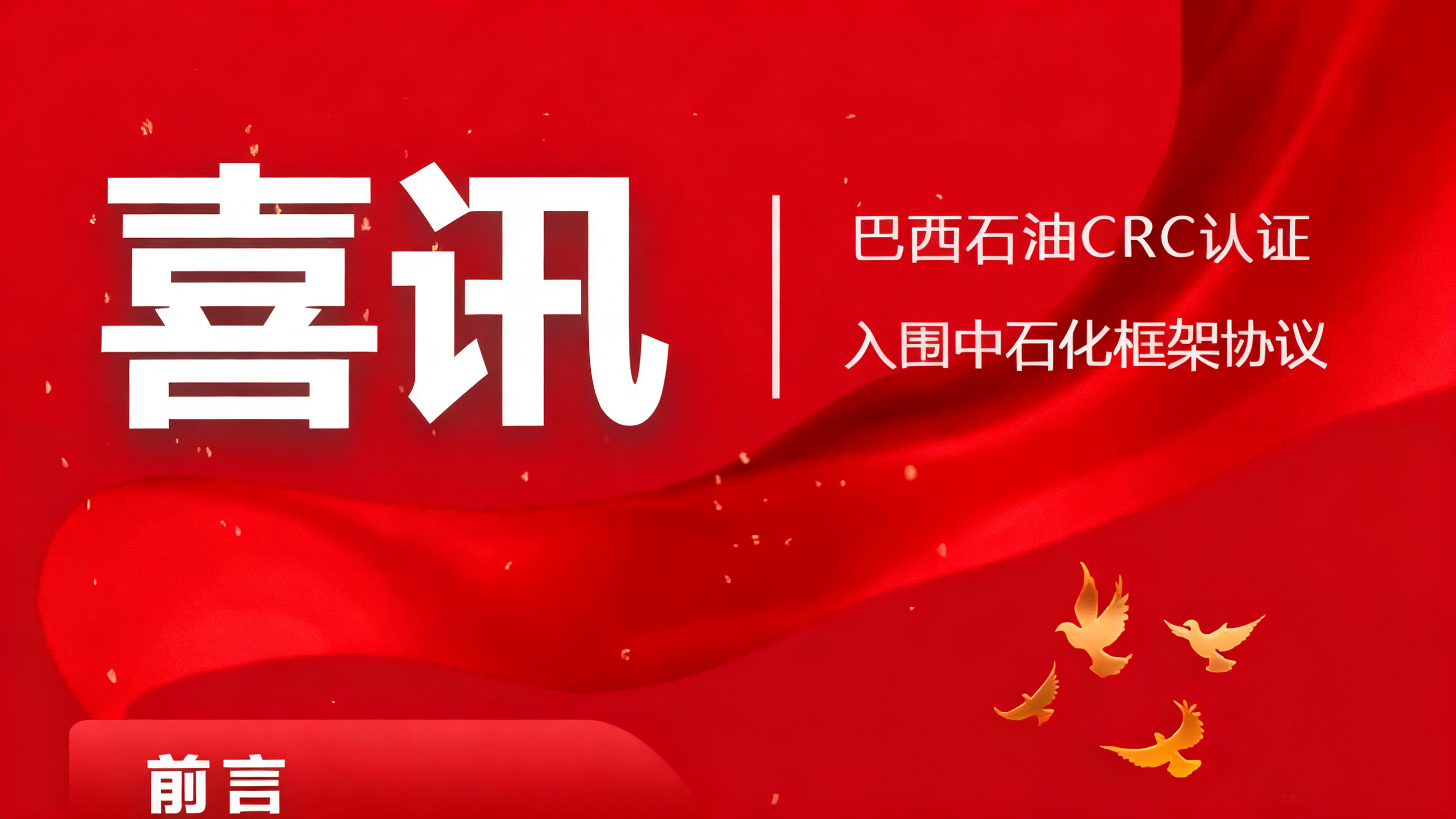 威?;C(jī)械有限公司近日接連斬獲國際國內(nèi)兩大高端市場入場券:成功通過巴西CRC認(rèn)證,正式進(jìn)入巴西石油供應(yīng)商體系;同時(shí)入圍…